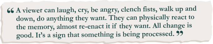 Most of the time the viewer becomes unaware of the person opposite them, apart from hearing their voice from time to time, or when they come to the end of a particular chain of memories.